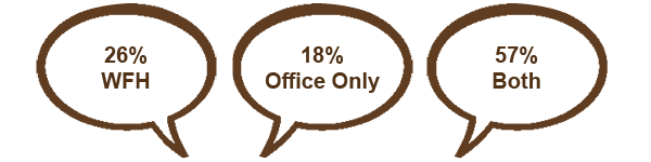 Now, according to a recent Servcorp LinkedIn poll, around 26% of 230 respondents preferred to only work from home while 18% stated they’d prefer to work in the office. A huge 57% said they’d like a combination of both.